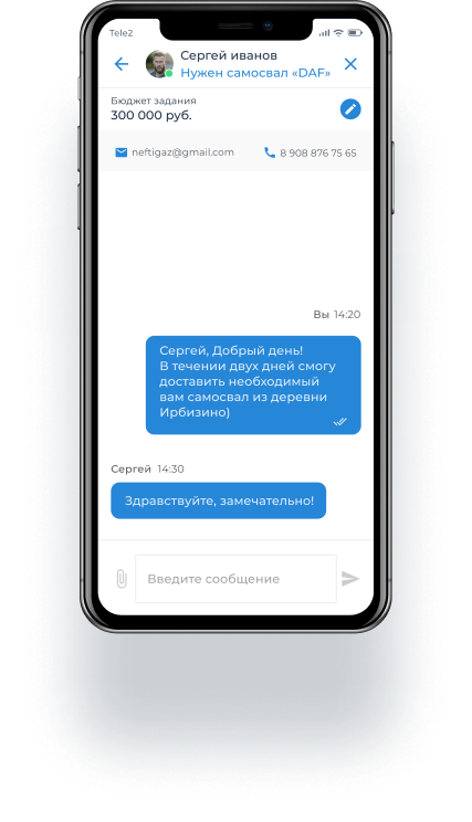 Детальные карточки заданий, отклик на задание, обсуждение деталей с исполнителем или заказчиком